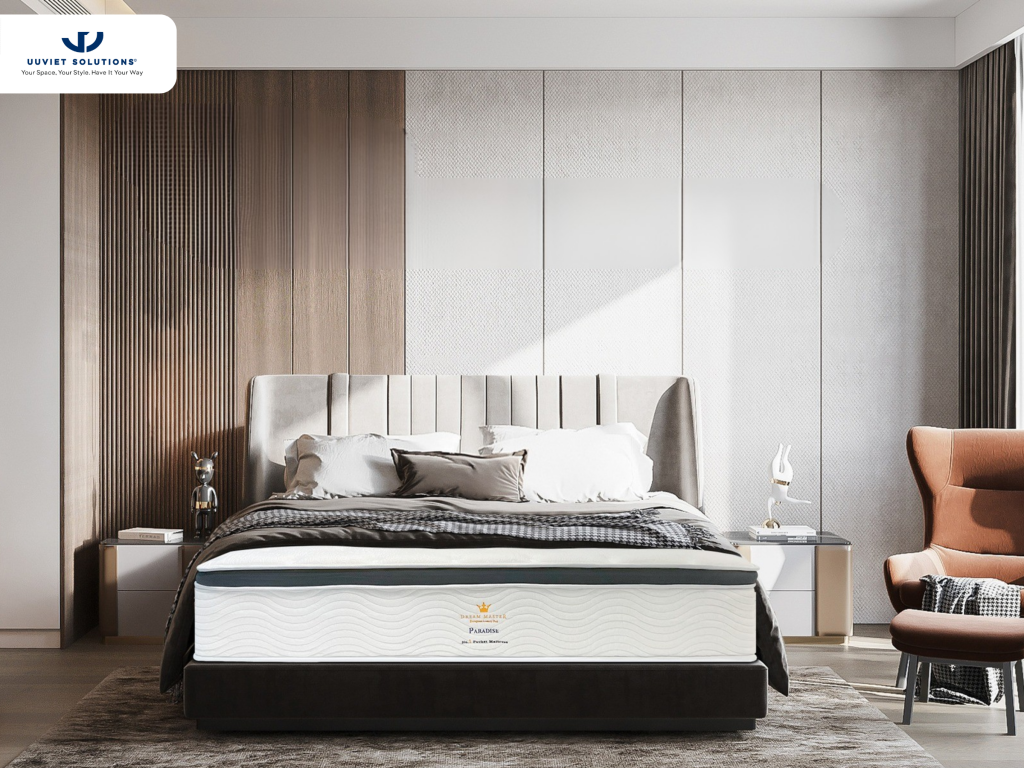 Việc chọn đúng kích thước nệm tiêu chuẩn không chỉ giúp tận hưởng giấc ngủ trọn vẹn mà còn góp phần hoàn thiện thẩm mỹ tổng thể của không gian phòng ngủ. Hãy luôn cân nhắc giữa nhu cầu sử dụng, diện tích phòng và sở thích cá nhân để tìm ra chiếc nệm phù hợp nhất cho mình và gia đình. Nếu bạn đang tìm kiếm những chiếc nệm lò xo, chăn – ga – gối hoặc phụ kiện phòng ngủ phù hợp cho gia đình hãy liên hệ ngay với Uuviet Solutions để được tư vấn chi tiết.