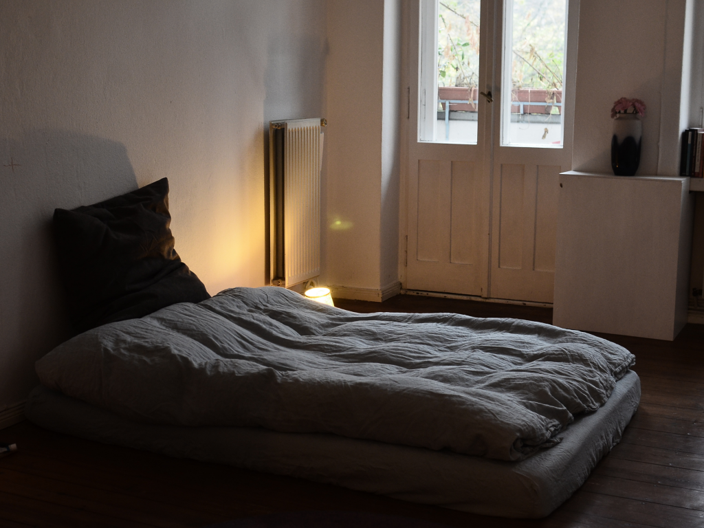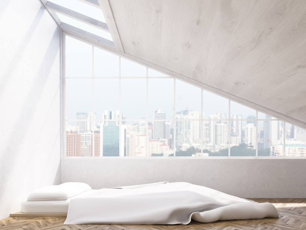Việc loại bỏ khung giường hoặc đầu giường sẽ giúp căn phòng trở nên gọn gàng, rộng rãi hơn. Đặc biệt với những căn phòng nhỏ, đặt nệm trực tiếp trên sàn mang lại cảm giác thông thoáng, tối giản mà vẫn tiện nghi.