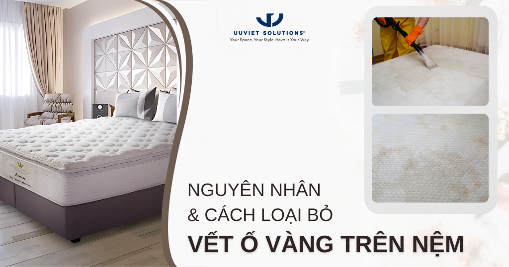 Những vết ố vàng là điều mà hầu như chiếc nệm nào cũng gặp phải sau một thời gian sử dụng. Nguyên nhân có thể đến từ các hoạt động của người nằm, chất lỏng, hoặc đơn giản là do quá trình oxy hóa theo thời gian. Việc làm sạch nệm đúng cách không chỉ giúp kéo dài tuổi thọ mà còn duy trì môi trường ngủ sạch sẽ, an toàn cho sức khỏe. Trong bài viết này, cùng Uuviet Solutions tìm hiểu chi tiết cách làm sạch vết ố vàng trên nệm và chi tiết lý do tại sao chúng lại xuất hiện.