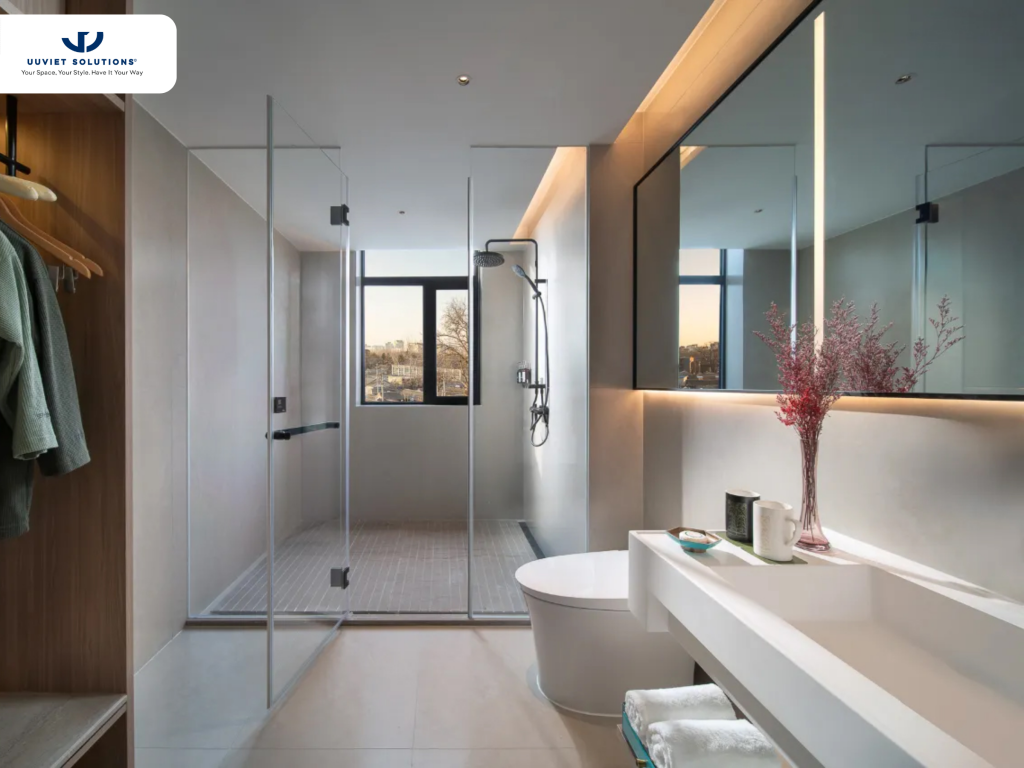 Để không gian phòng tắm trong suốt vừa đẹp mắt, tiện nghi và an toàn, việc lựa chọn thiết bị là yếu tố then chốt. Dưới đây là ba tiêu chí quan trọng mà Uuviet Solutions gợi ý: