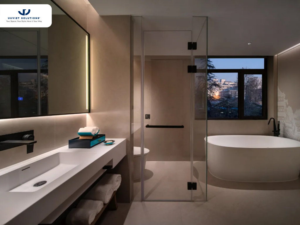 Trong những năm gần đây, phòng tắm trong suốt trở thành xu hướng thiết kế phổ biến trong các khách sạn hiện đại. Không chỉ mang lại cảm giác sang trọng và tinh tế, mà còn giúp tối ưu hóa không gian, tăng tính thẩm mỹ và nâng cao trải nghiệm của du khách. Cùng Uuviet Solutions khám phá những lý do vì sao các khách sạn lại ưa chuộng thiết kế phòng tắm trong suốt đến vậy và cách lựa chọn thiết bị phù hợp để hoàn thiện không gian này.