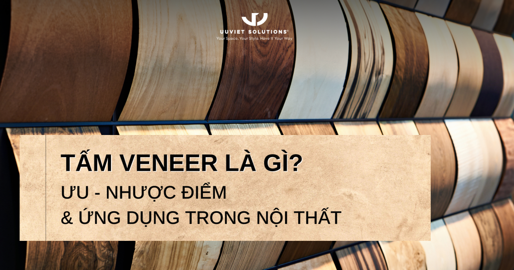 Trong thế giới vật liệu nội thất ngày nay, gỗ Veneer đang trở thành xu hướng được nhiều nhà thiết kế và gia chủ ưa chuộng. Với khả năng tái hiện vẻ đẹp tự nhiên của gỗ thật, chi phí hợp lý cùng tính linh hoạt cao trong thi công, tấm Veneer không chỉ giúp tiết kiệm tài nguyên rừng mà còn mang lại giá trị thẩm mỹ tinh tế cho mọi không gian sống. Bài viết dưới đây Uuviet Solutions sẽ giúp hiểu rõ hơn về Veneer là gì, cấu tạo, các loại phổ biến, cùng ưu nhược điểm và ứng dụng của chúng trong thiết kế nội thất hiện đại.